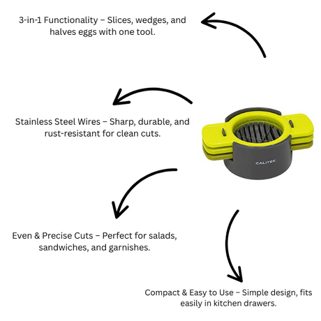 CALITEK 3-in-1 Egg Cutter, Wedger & Slicer – Steel
