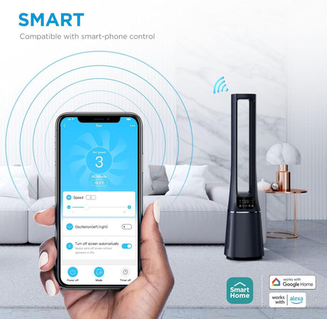 Midea MBF150BSUK 2-in-1 Bladeless Tower Fan 10 Speed Settings Dark blue