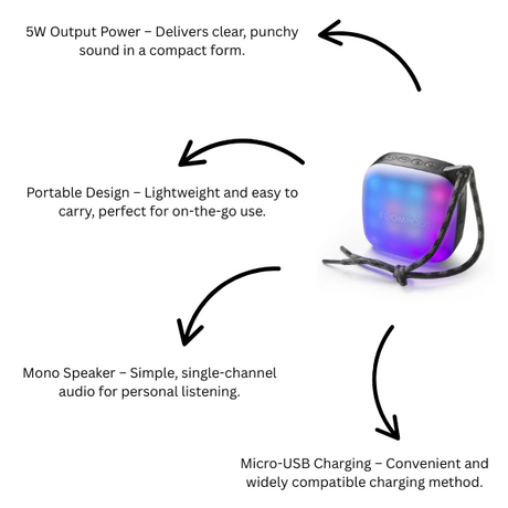 Boompods Rhythm Mono Portable Speaker Black 5W includes Micro-USB