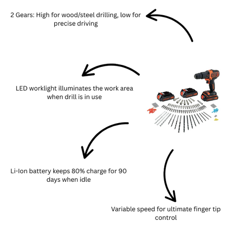 "Black+Decker 1.5Ah 18V Cordless Hammer Drill – 80pcs"