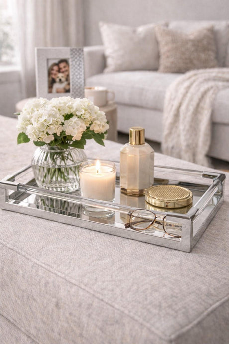 Lucita Silver Finish Contemporary Luxe Rectangular Tray Width 46cm