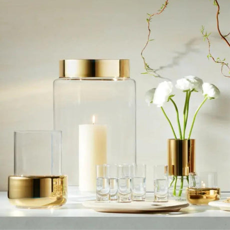 LSA International Aurum Lantern Vase Height 20cm Clear and Gold