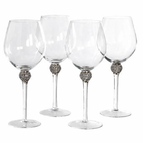 Luxury Crystal Effect Wine Glasses Set of 4 with Diamante Detailing