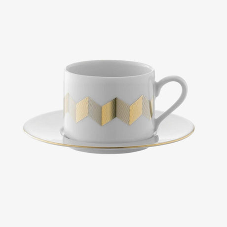 LSA Chevron Porcelain Teacup and Saucer 250ml Set Of 4 White and Gold