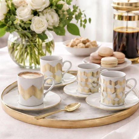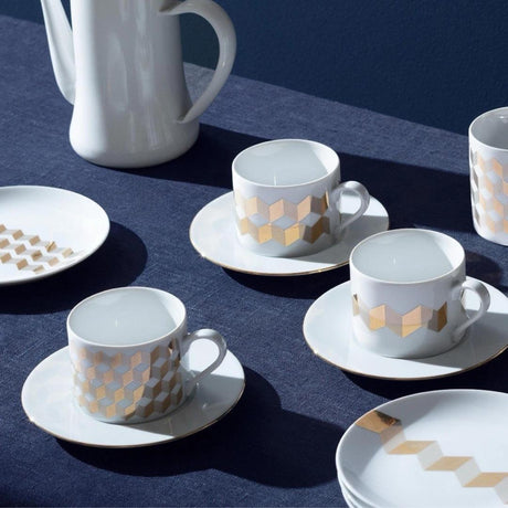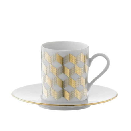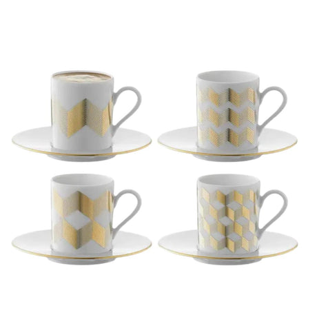 LSA Chevron Espresso 100ml Coffee Cup and Saucer Set of 4 Gold