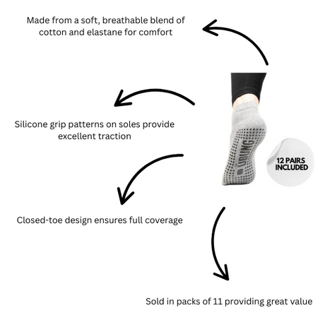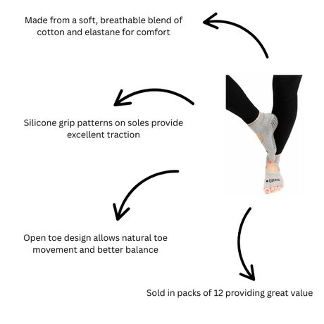 Ubung Grey Yoga CAL173 Non Slip Open Toe Socks Packs of 12 Size 4-9 UK Size