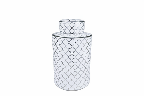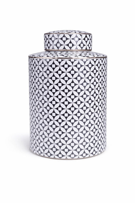 Black and White Print Ceramic Lidded Jar H32cm