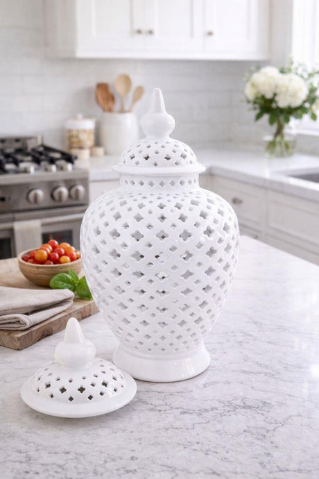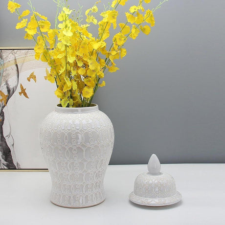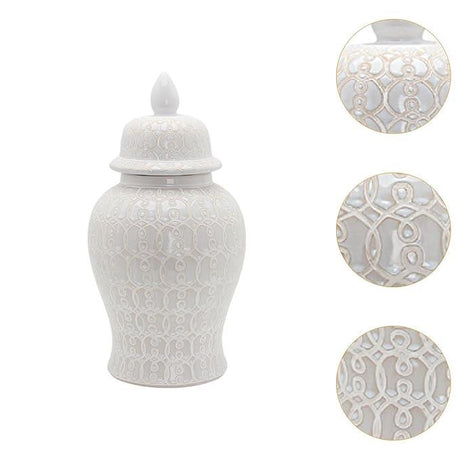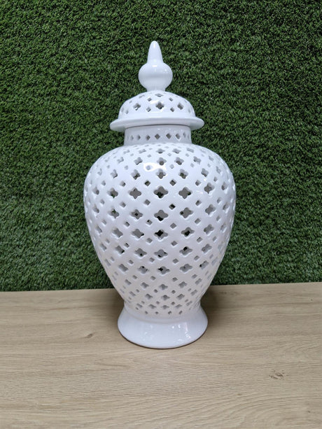 White Ceramic Lattice Ginger Jar Decorative Accent Vase 50cm