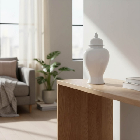 Elegant White Porcelain Ginger Jar Ornament H50cm