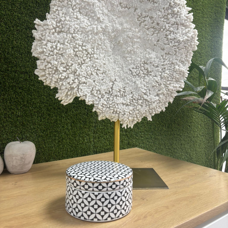 Black & White Geometric Lidded Jar 20cm Wide with Gold Rim
