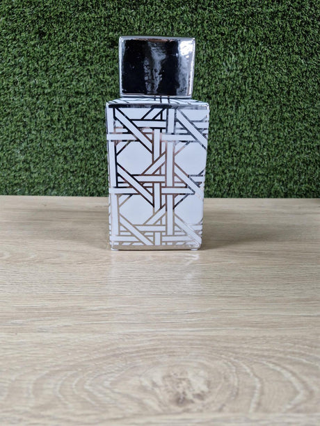 White and Silver Chrome Ceramic Square Geometric Vase with Lid