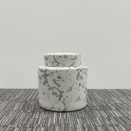 White and Grey Marble Effect Storage Jar with Lid H16.5cm